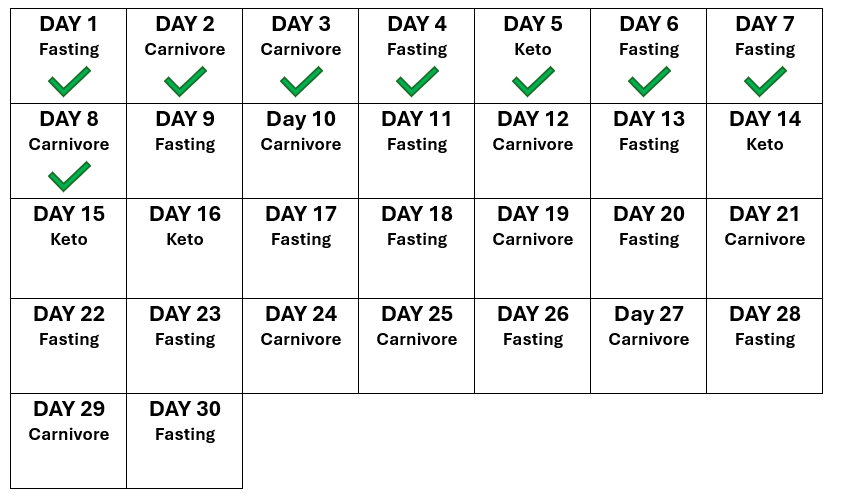 Today is a non work day, and so my plan is to go to the gym with my daughter this morning, clean house, visit family this afternoon and then attend a church meeting tonight. Just finishing 2 days of fasting, today is a Carnivore day, so normally I would have a few eggs before going to the gym.